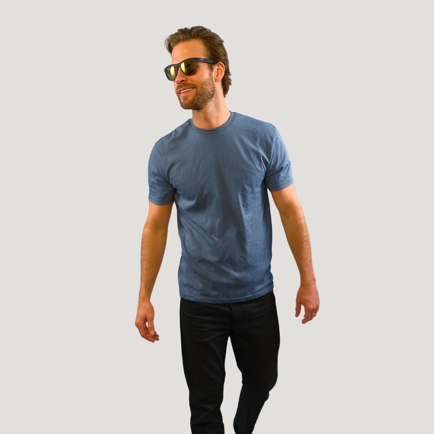 Blam's t-shirts are meticulously crafted to provide a perfect fit that accentuates a man’s physique. Our design philosophy focuses on your core areas; enhances the natural contours of the chest and arms, a subtle tapered fit on the sides subtly slims the waistline, hidden front fabric cleverly conceals Dad belly’s.