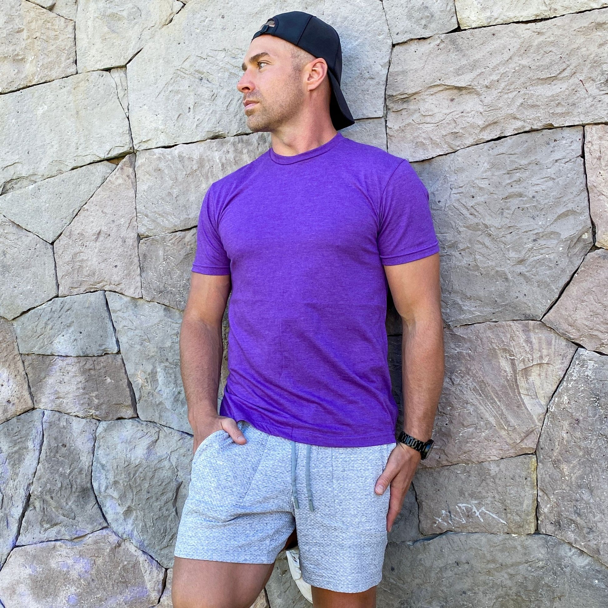 Blam's t-shirts are meticulously crafted to provide a perfect fit that accentuates a man’s physique. Our design philosophy focuses on your core areas; enhances the natural contours of the chest and arms, a subtle tapered fit on the sides subtly slims the waistline, hidden front fabric cleverly conceals Dad belly’s.